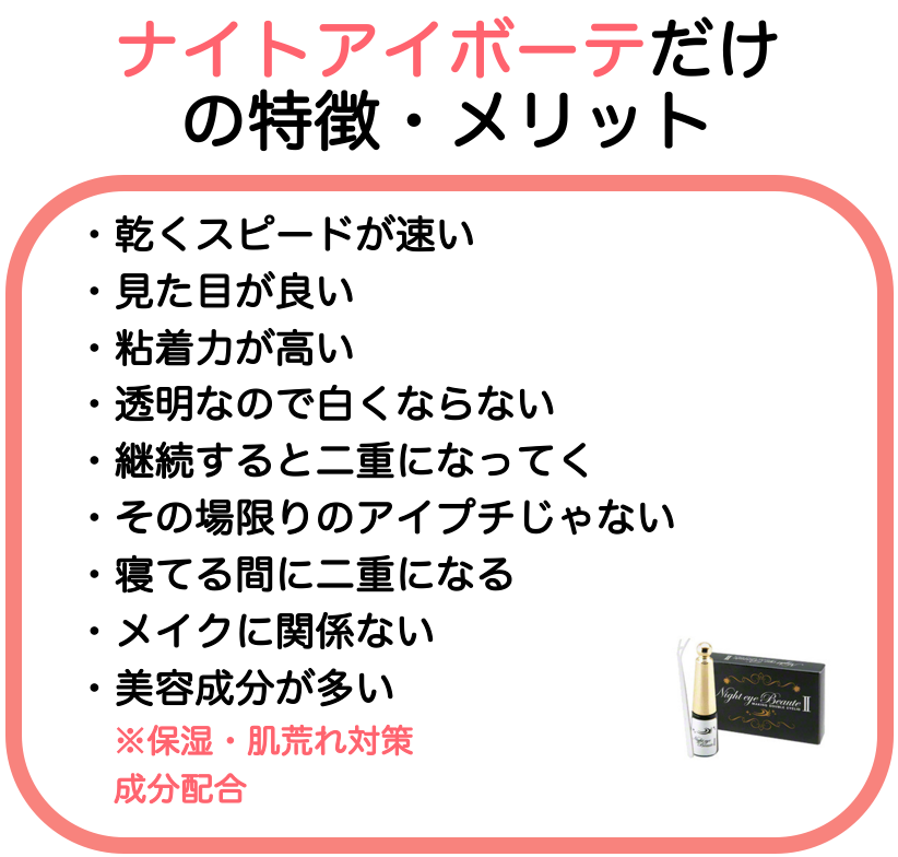 ナイトアイボーテは、寝ながら二重にできる今人気の二重コスメです。