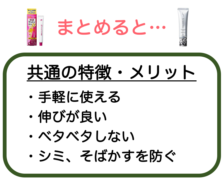 ここで【ケシミンクリーム】と【SIMUTE(シミュート)】を細かく比較して見ましょう。
