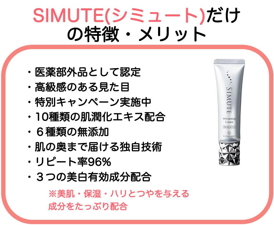 SIMUTE(シミュート)は、シミ専用クリームでありながらもお肌にとっても良いのが大きな特徴です。