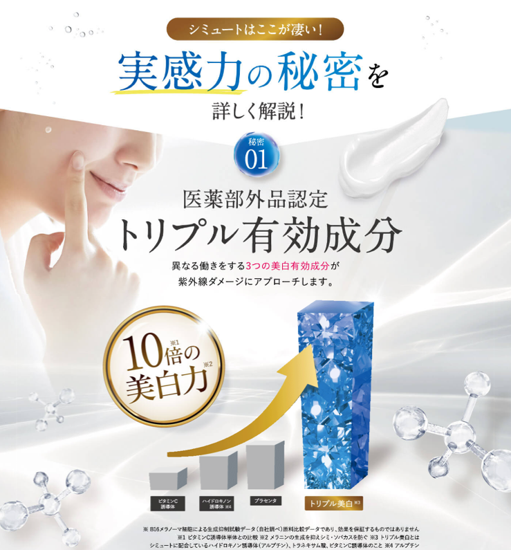 SIMUTE(シミュート)は、シミ専用クリームの中で最も効果効能を目指した製品と言えるでしょう。