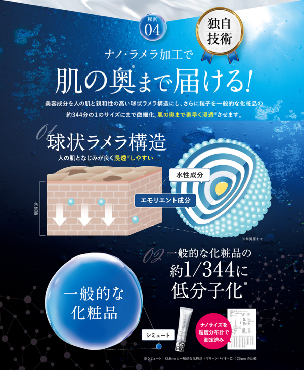 4つ目の特徴は、肌の奥まで届ける独自ナノ・ラメラ加工技術が使われていることです。